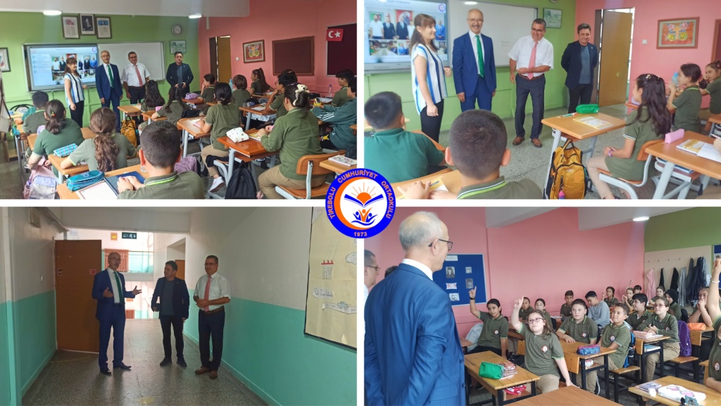 08 Eylül 2025 Pazartesi günü 2025/2026 Eğitim Öğretim Yılının başlaması ile İlçe Milli Eğitim Müdürü Sayın İbrahim Yılmaz ile Şube Müdürü Murat Bayram okulumuzu ziyaret ettiler. Ziyaretleri kapsamında sınıflarımızı da ziyaret ederek öğrencilerimizle sohbet eden müdürümüz başarı temennileri ile okulumuzdan ayrıldılar.